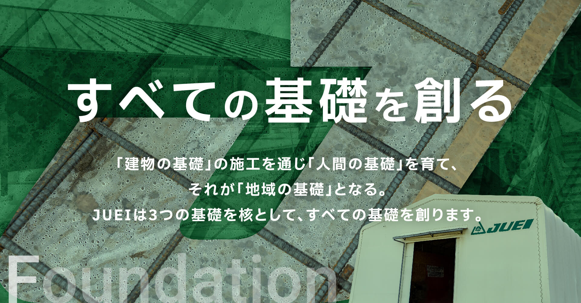 基礎から始まったJUEI。基礎工事はもちろん、建物の建築まですべてお任せください。